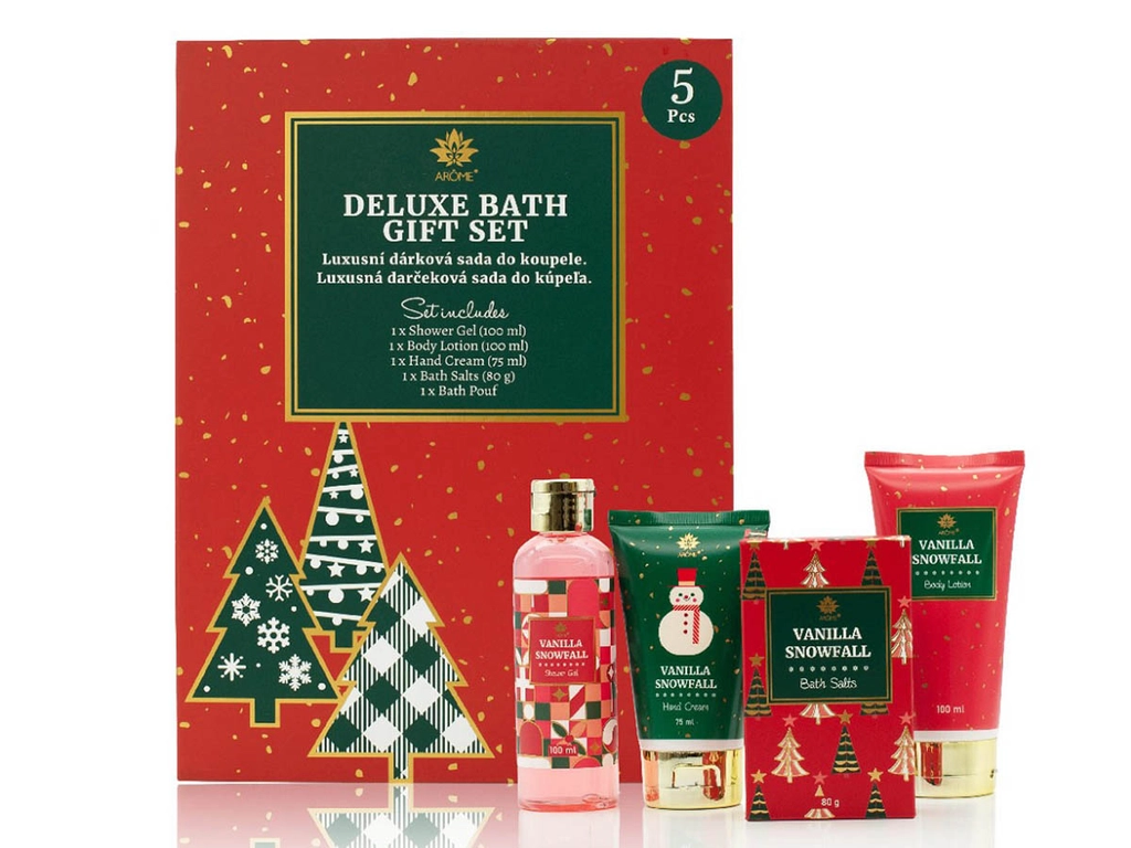 Elegantně zabalený set kosmetiky, který promění běžnou péči o tělo na kouzelný rituál pohody. V desingnové červené krabičce najdete: sprchový gel, tělové mléko, krém na ruce, koupelovou sůl a jemnou koupelovou houbu. Vánoční kosmetika nepotěší jenom vás, ale i jako dárek pro ženu pod vánočním stromečkem.