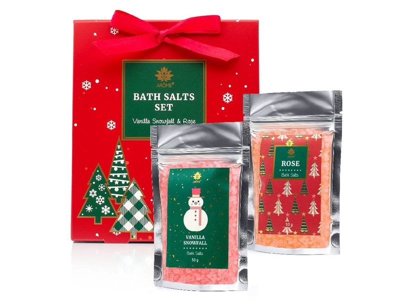 Darujte aromaterapii v podobě vánoční sady koupelových solí ARÔME Vanilla Snowfall & Rose, které promění běžnou koupel v příjemný rituál klidu a relaxace. Spojení sladké vůně vanilky a jemné květinové vůně růže s obsahem balení po 50 ml navodí pohodu, zatímco glycerin pečuje o pokožku, aby byla po koupeli hebká a hydratovaná. Elegantní balení se stuhou z ní činí ideální dárek pro chvíle zimního odpočinku.
