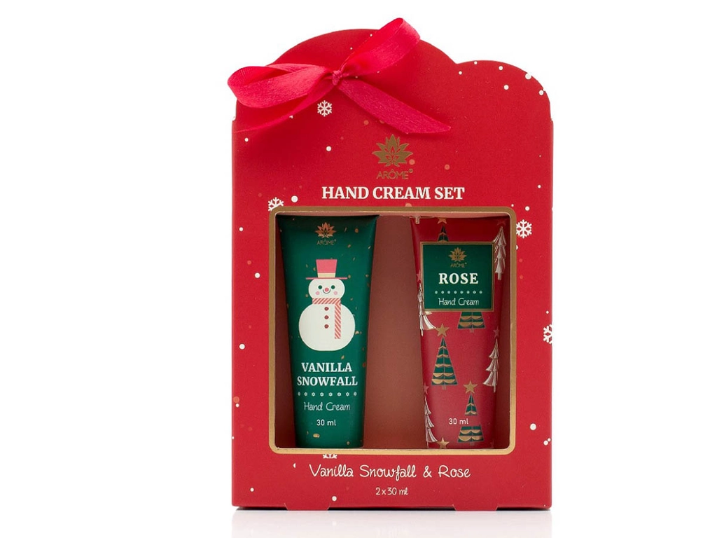Udělejte radost rodině či blízkým s touto vánoční sadou hydratačních krémů na ruce ARÔME Vanilla Snowfall & Rose. Krémy na ruce přináší jemnou péči, hebkost a vůni, která potěší každý den. Nejen krásné obaly krémů s obsahem 2 x 30 ml, ale i dárkové balení je ideální jako drobný dárek, milá pozornost nebo praktické potěšení pro zimní období.