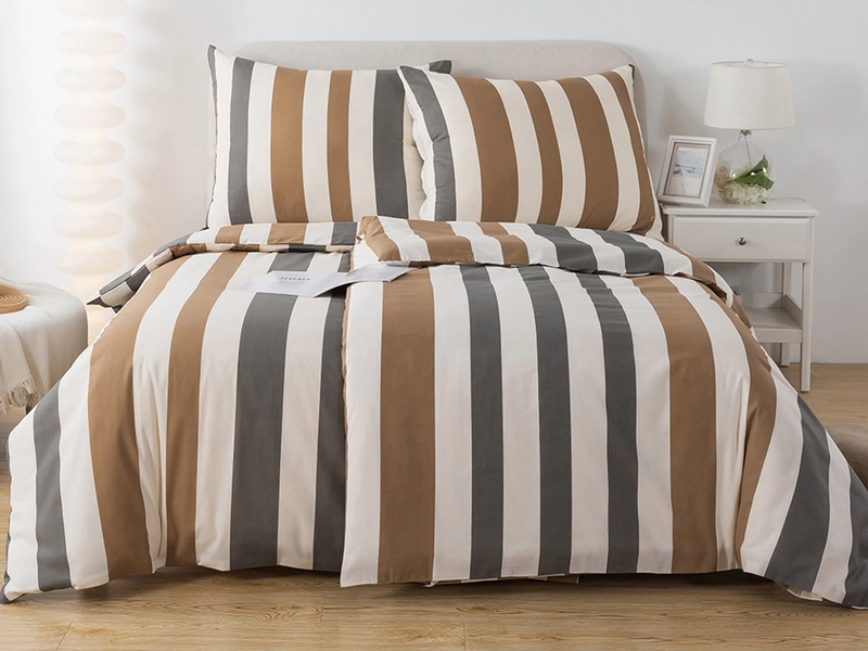 Bavlněné povlečení a skandinávský vzor pruhů vnese do každé ložnice tu správnou atmosféru. Na své si přijdou milovníci hnědých a šedých odstínů na krémové v podkladu. Díky dobrým vlastnostem 100% bavlny je povlečení příjemně prodyšné a hebké na omak s vynikající absorpcí vlhkosti. Bavlněné povlečení na 2 postele skvěle padne na klasický rozměr přikrývky 140x200 a polštáře 70x90. Ozdobte svou postel a ochraňte lůžkoviny i ve dne! Přehoz na postel je na to ideální.