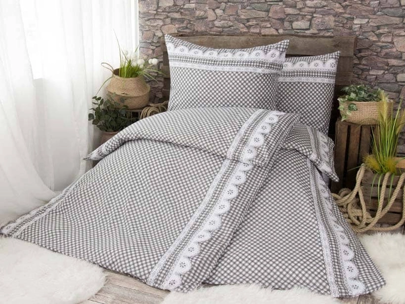 Máte rustikální ložnici nebo hledáte šik ložní prádlo na chatu? Toto bavlněné povlečení a potisk tradičního vzoru kanafasu či kostkované tkaniny v kombinaci neutrálních barev šedé a bílé je pro takové interiéry jako stvořené. Měkký, prodyšný materiál ze 100% bavlny a plátnová vazba si vás získá díky vysoké snášenlivosti vůči praní a sušení. Využijte výhodný set 2+2 na dvě klasická lůžka o rozměru povlaku na peřinu 140x200 a na polštář 70x90 s praktickým zapínáním na knoflíky.