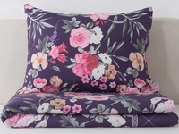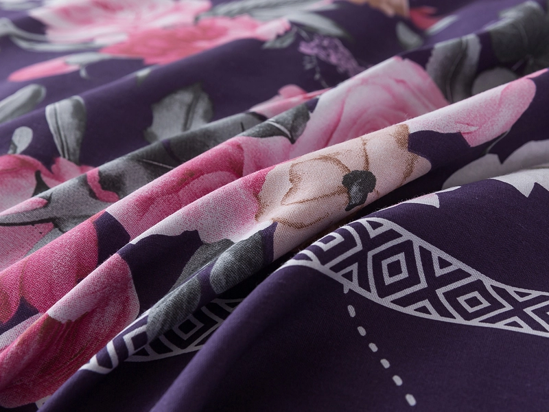 Bavlněné povlečení s motivem květin na tmavě fialovém podkladu v sobě snoubí romantický styl i eleganci. Nechte se unést do vln sladkého spánku v náruči 100% bavlny, která má vynikající termoregulační schopnosti, je odolná a dobře absorbuje vlhkost.