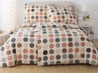 Bavlněné povlečení a nový dezén velkých puntíků POLKA s krémovým podkladem a potisku vzoru v hnědých tónech podtrhne v ložnici retro i mderní styl. Povlečte si povlečení, jenž vás bude těšit celý den a hedvábně jemné pohlazení bavlny si do sytosti vychutnáte při každém odpočinku a hlavně v noci. Vyměnte své ložní prádlo a využijte výhodný set 2+2 na dvě klasická lůžka. Ozdobte svou postel i ve dne a ochraňte lůžkoviny přehozem na manželskou postel.