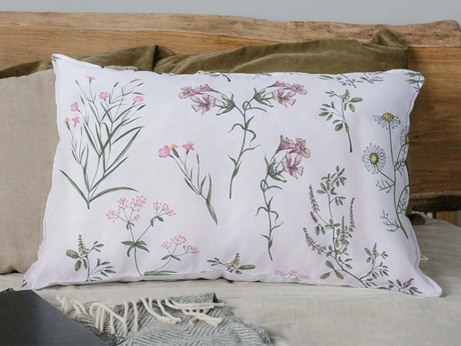 Toužíte rozproudit jarní energii i ve vaši ložnici? V tom případě vsaďte na květinové povlečení, jenž vnese svěžest i lehkost lučních květů na vaše lože. Bílý podklad a vzor s akcentem zelené a růžové barvy působí v interiéru čistě a vzdušně. Navíc oceníte přírodní vlákna bavlny, které jsou pro povlečení ideální. Nabízí vlastnosti jako vzdušnost, savost i jemný hladký povrch, co je ideální pro spokojený a kvalitní spánek.
