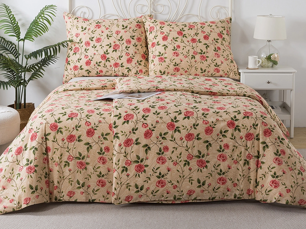 Bavlněné povlečení ZAHRADA RŮŽÍ na dvě lůžka (140 x 200 cm) promění vaši ložnici v klidné místo plné něhy a elegance. Jemný květinový motiv růžových růží na béžovém podkladu se světlými ornamenty působí romanticky, ale zároveň nadčasově – skvěle zapadne do vintage i klasicky laděného interiéru. Oceníte také výhody povlečení: 100% bavlna – přírodní, prodyšná a šetrná k pokožce, ideální pro celoroční použití, skvělá savost a termoregulace – v létě chladí, v zimě zahřeje, stálobarevný potisk – růže zůstávají krásné i po opakovaném praní, snadná údržba – bavlna se dobře pere i žehlí.
