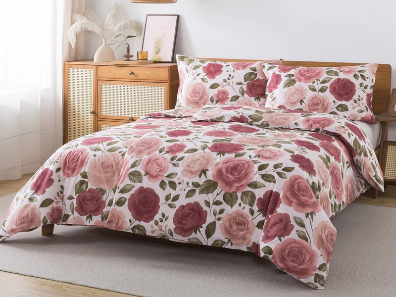 Bavlněné povlečení 140x200 cm se vzorem růží pro romantické ložnice