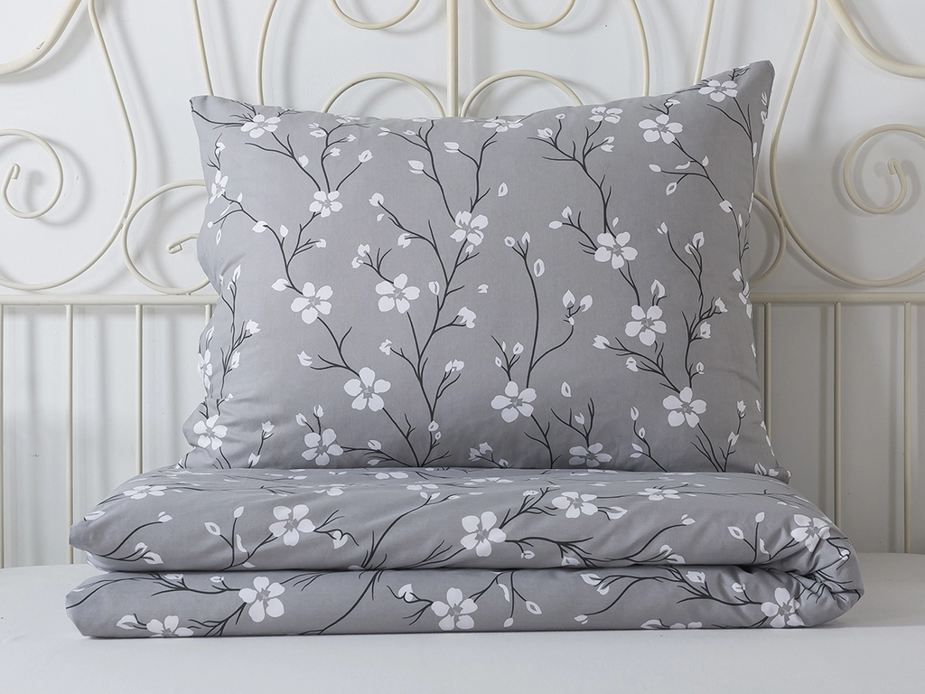 Bavlněné povlečení a vzor květů na šedé v základu promění vaši ložnici v rozkvetlou zahradu. Záplava květů na neutrální šedé evokuje přírodu a vy se tak v místnosti budete cítit uvolněně každé ráno. Materiál z bavlny Renforcé řadí ložní prádlo mezi luxusní povlečení. Jemně tkaná vlákna bavlny nabízí žádoucí vlastnosti, jako je měkkost, savost a vzdušnost co přispěje ke kvalitě spánku. Odolnost materiálu a barev vám dává prostor pro použití vyšších teplot praní.