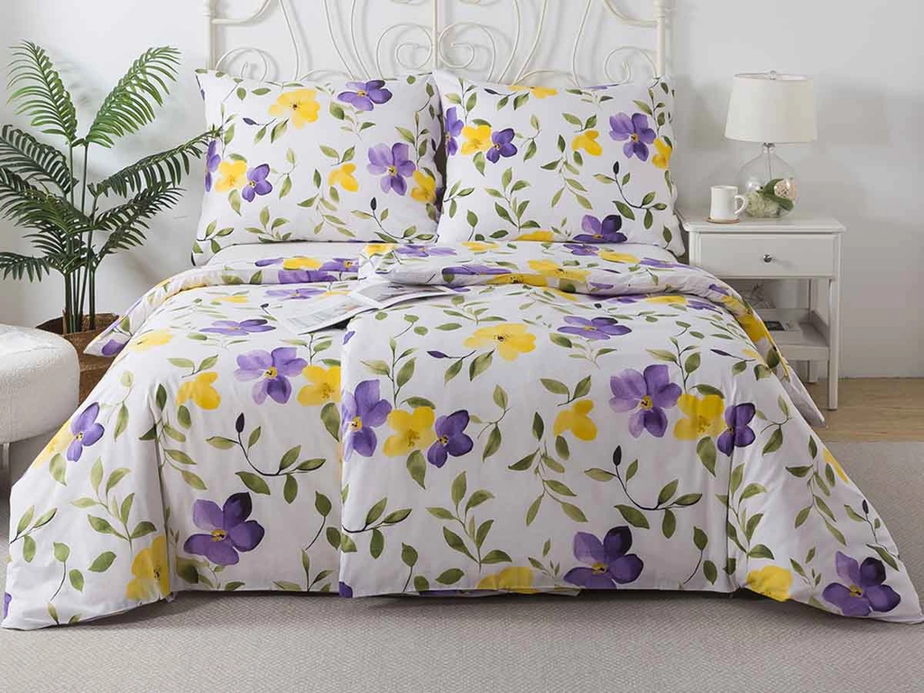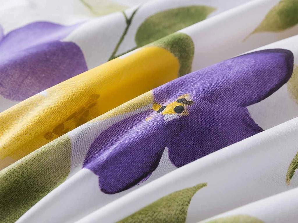 Květinové povlečení s motivem fialek - pro svěží interiér ložnice