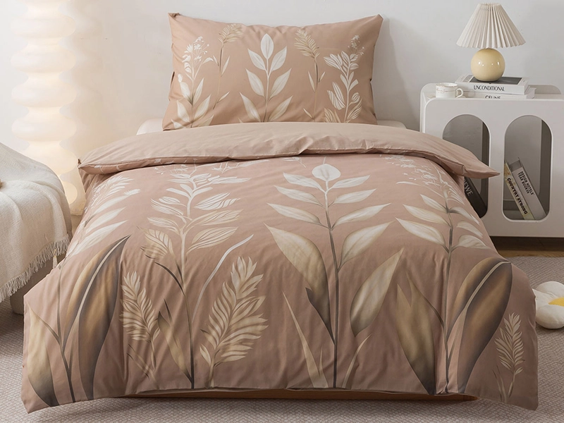 Povlečení z bavlny a florální vzor listů i bylin pro přírodní styl interiéru