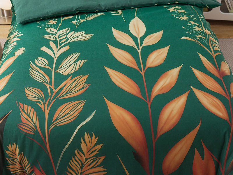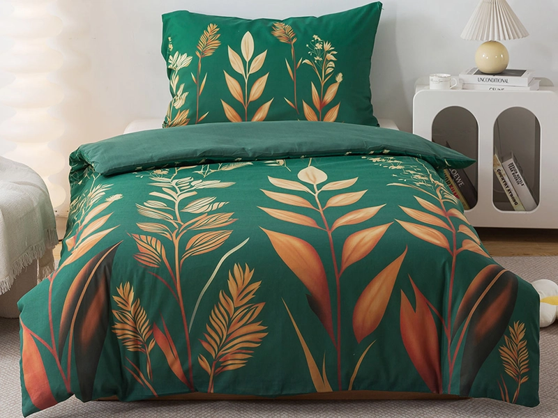 Bavlněné povlečení a florální vzor listů i bylin pro přírodní styl interiéru