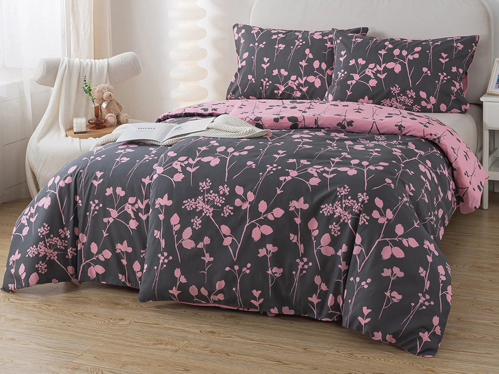 Bavlněné povlečení se vzorem květin vnese do každé ložnice tu správnou atmosféru. Na své si přijdou milovníci barev v kombinaci růžové a šedé, a také vyznavači pohodlného spánku v jemné bavlně. Oboustranné povlečení přináší DUO provedení barev, které vám dává prostor zvolit si každý den buď šedý, anebo růžový podklad podle nálady a to pouhým otočením přikrývky a polštáře. Díky dobrým vlastnostem 100% bavlny Renforcé je povlečení příjemně prodyšné a hebké na omak s vynikající absorpcí vlhkosti.