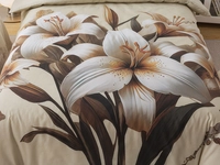 Ložní souprava s motivem lilií v sobě nese symboliku čistoty, elegance a klidné ženské energie, která promění vaši ložnici v harmonické útočiště. Lehkost a krása velkých květů na krémové v podkladu a digitální tisk se ve spojení s hladkou a prodyšnou bavlnou promění vaši postel v jedinečné místo ke klidnému spánku. Renforcé povlečení je zhotoveno z kvalitní bavlny, která je odolná materiálem i barvou a s dlouhou životností se tato ložní souprava řadí mezi luxusní povlečení. Povlak na peřinu je ze spodní strany jednobarevný, povlak na polštář má potisk z obou stran.