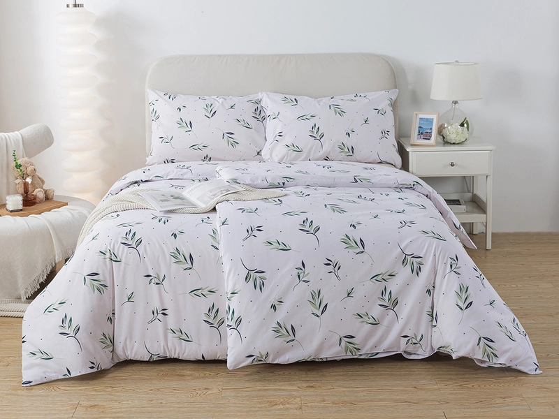 Bílé povlečení 140x200 z bavlny a vzor oliv pro romantické ložnice