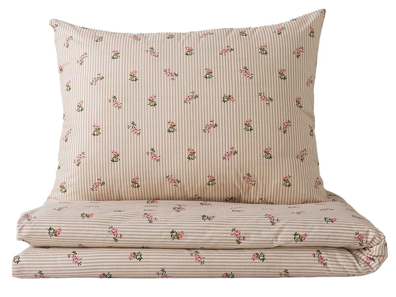 Dopřejte si klidný spánek v povlečení, které spojuje romantický nádech a nostalgii v objetí náruče našich babiček i maminek. Jemný proužek v kombinaci s růžovým vzorem drobných kvítků růží vytváří něžný, harmonický vzhled, který zútulní každou vintage ložnici nebo krásně doladí chalupu. Renforcé povlečení z kvalitní 100% bavlny vyniká hebkostí, prodyšností a dlouhou životností. Díky příjemnému bavlněnému materiálu je toto luxusní ložní prádlo ideální pro celoroční použití. Renforcé tkanina se snadno udržuje, je odolná vůči častému praní a barvy na ložní soupravě si dlouhodobě zachovávají svoji svěžest.