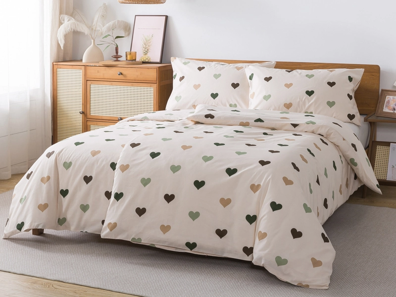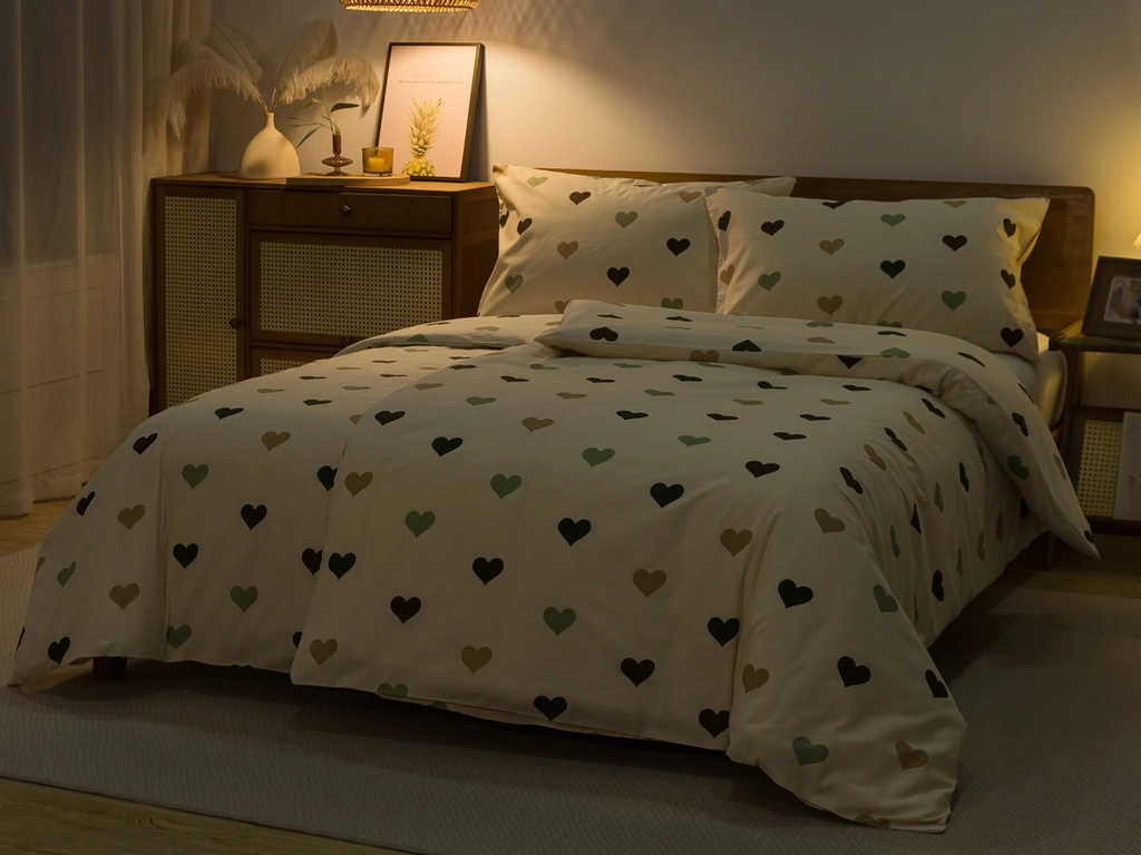 Béžové povlečení se srdíčky pro kvalitní spánek v bavlně