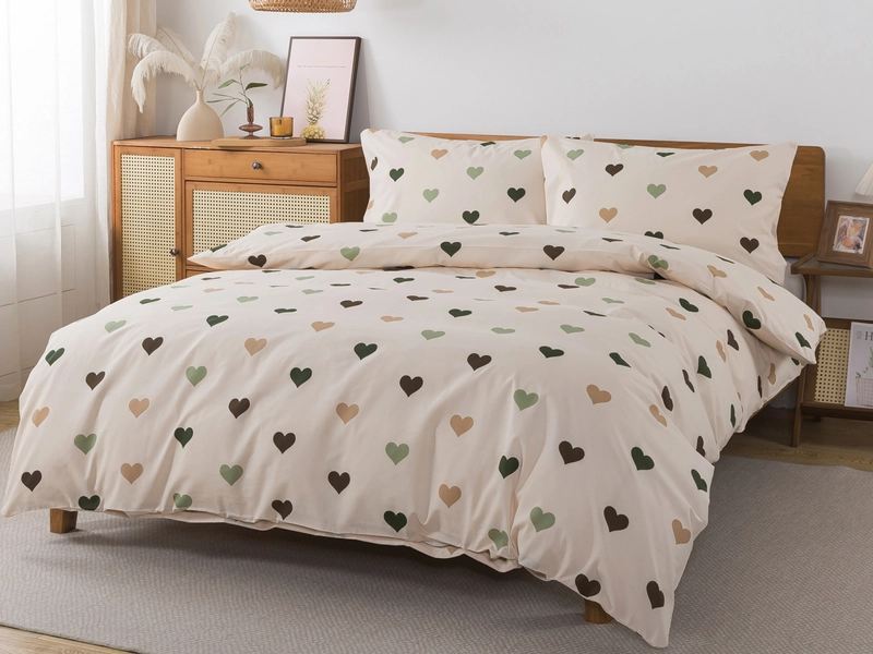 Béžové povlečení se srdíčky pro kvalitní spánek v bavlně