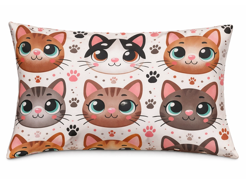 Bavlněný povlak na polštář a motiv koček na bílém základu je skvělou volbou pro milovníky zvířat a pro ty, kteří chtějí přidat do interiéru trochu hravosti a radosti. Povlaky na polštáře 50x70 cm jsou ideální pro oživení ložnice i dětského pokojíku a taky příjemné pro pohodlný odpočinek. Materiál bavlny má jasné a stálé barvy, které neztratí na kráse ani po mnoha vypráních. Každý povlak na polštář je jedinečný a nese na sobě jinou část vzoru z metráže.