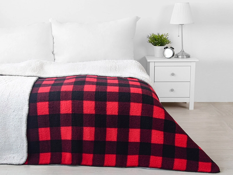 Beránková deka KOSTKY - červená/černá 150x200 cm