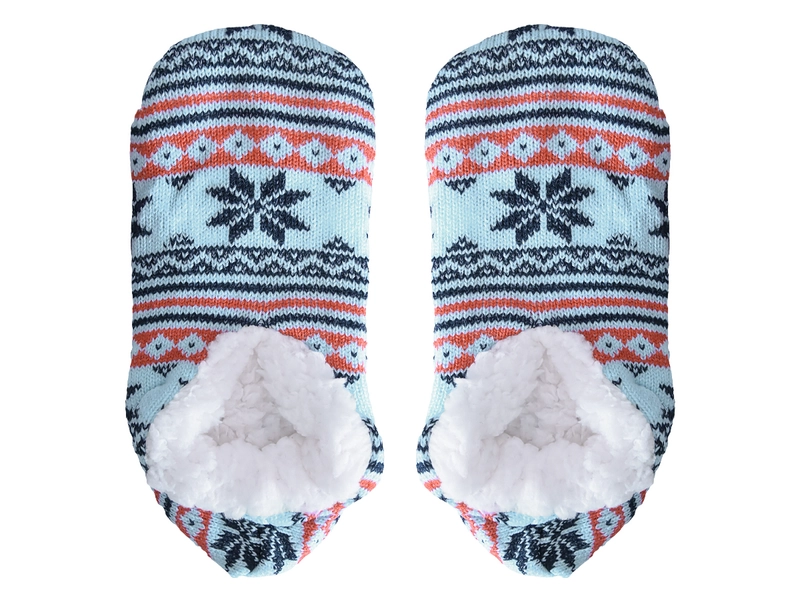Hledáte ponožky, hřejivý materiál a modrá je váš top? Zahřejte své nohy ve vlně a měkoučkém beránku a dopřejte jim tak pohodlí i tepelný komfort. Potěší vás krásné severské vzory v kombinaci jemného bílého beránku. Teplé ponožky jsou praktické nejen díky hřejivosti, ale oceníte také protiskluzový povrch, který zajistí vaše bezpečí proti uklouznutí. Materiál ponožek se přizpůsobí šíři chodidla, neškrtí a poskytne tak požadované pohodlí. Stačí si jen zvolit správnou velikost.