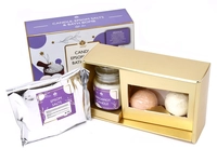 | Obsah balení | 1 svíčka, 2 koupelové bomby, 1 koupelová sůl |