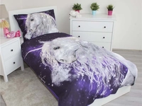 Kdo si jednou zamiluje jednorožce, získá lásku na celý život. Povlečení s potiskem těchto nádherných a ušlechtilých zvířat je příjemné na dotek a pyšní se precizním ušitím. Působivý motiv v kombinaci s hebkým materiálem snadno přispějí ke spokojenému spánku vašich ratolestí. Povlak na peřinu je ze spodní strany jednobarevný, povlak na polštář 50x70 je s potiskem z obou stran. Udělejte dětem radost! Jemná 100% bavlna spolehlivě absorbuje vlhkost a je příjemná na dotek.
