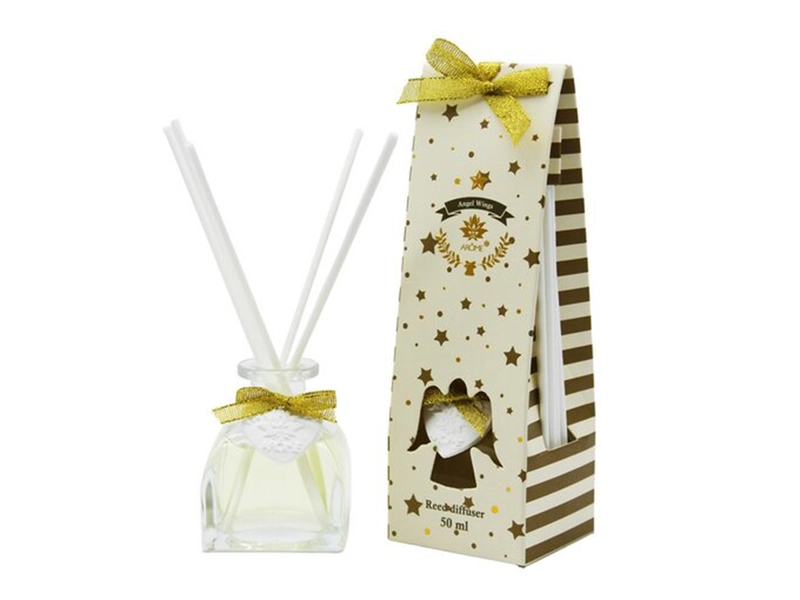 Krásná vůně, hebká a čistá jako andělská křídla. Nechte se hýčkat lehkými tóny květin, sladké vanilky a vzácných dřevin. Aroma difuzér ANGEL WINGS navodí atmosféru pohody a uvolnění jednoduchým vložením tyčinky do parfému. Pro intenzívnější vůni stačí přidat více tyčinek. Dárková krabička se zlatou mašlí potěší nejen vás, ale i jako dárek pro vaše blízké.