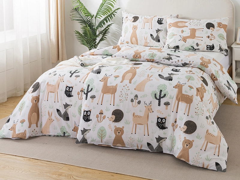 Flanelové povlečení krásně zahřeje a lesní motivy obohatí ložnici příjemnou svěží atmosférou. Vzor stromků, jelenů i hříbků na bílé v podkladu je nadčasovou dekorací v podobě povlečení pro moderní interiér ložnice i pokojíku. Kombinací dalších barev v zelené, nebo různých odstínů hnědé můžete zvýraznit vzor na povlečení, a to snadným doplněním polštářků i mikroplyšové deky. Klasický rozměr povlečení na jednu postel snadno povléknete na přikrývku 140x200 a polštář 70x90 cm. Jemný a hřejivý materiál 100% bavlny česaný do flanelu je dobře prodyšný, savý i stálobarevný