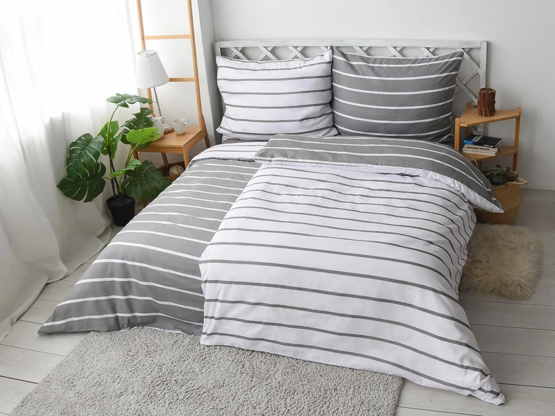 Francouzské povlečení a efektní vzor pruhů vnese do každé ložnice moderní styl. Na své si přijdou milovníci pravidelných linií a provedení dua barev, které šedé povlečení a z druhé strany bílé povlečení nabízí. Bavlněné povlečení na 2 postele doplňuje na dotek hebký materiál ze 100% bavlny, který je vzdušný a dobře absorbuje vlhkost.