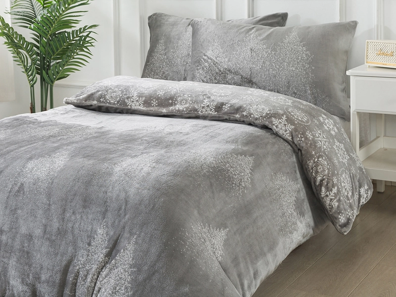 Mikroplyšové povlečení a vzor stromečků i sněhových vloček, to je krása a neotřelý styl na hřejivém mikroplyši pro vaši ložnici. Tento decentní design v barvě bílé a šedé vytváří jedinečný vzhled, který dodá interiéru harmonii neutrálních barev. Mikroplyšové povlečení 200x220 nabízí DUO vzor s florálním motivem na straně jedné, a se sněhovými vločkami na straně druhé, a dává tak prostor k volbě dalších barev a kombinací mikroplyšových doplňků podle nálady. Toto francouzské povlečení je vyrobeno z jemného, měkkého a plyšového materiálu, který je velmi příjemný na dotek a má vynikající tepelnou izolaci. Povlečení na zip se snadno udržuje a můžete jej sušit při nízké teplotě i s použitím sušičky. Mikroplyšový materiál vám při správné údržbě vydrží po dlouhou dobu a zachová si svou krásnou barvu a měkkost.
