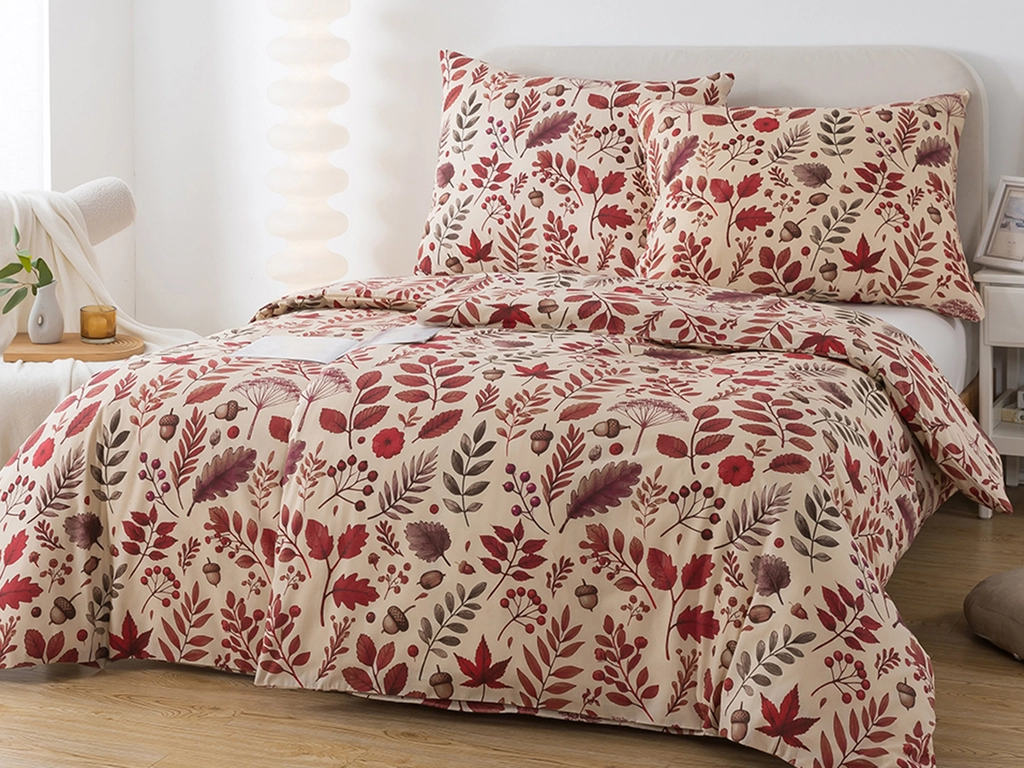 Vneste do své ložnice hřejivou atmosféru podzimu s tímto stylovým povlečením z bavlny renforcé. Béžový podklad zdobí detailně propracovaný vzor listů, žaludů a bylin v odstínech červené a hnědé, které vám připomenou klidné procházky lesem. Toto francouzské povlečení 200x220 cm má příjemný motiv i vzdušné a savé provedení v bavlně, které přináší nejen estetický zážitek, ale i maximální pohodlí během spánku
