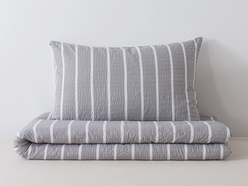 Kvalitní krepové povlečení a efektní vzor pruhů vnese do každé ložnice nerušivý a moderní design. Na své si přijdou milovníci pravidelných linií a provedení dua barev. Získáte tak nejen šedé povlečení a bílé pruhy, ale z druhé strany také bílé povlečení a šedé pruhy, které si můžete měnit podle nálady. Bavlněné povlečení doplňuje krepový materiál ze 100% bavlny, který je vzdušný, dobře absorbuje vlhkost a šetří čas jako nežehlivé ložní prádlo.