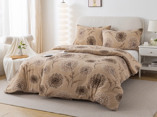 Oživte svou ložnici jemným dotekem letní přírody. Krepové povlečení s béžovým podkladem a elegantními modrými květy přináší svěží atmosféru a lehkost do přírodně laděného i venkovského interiéru. Vzdušná bavlna se zvrásněnou krepovou úpravou je ideální volbou pro teplé letní noci – je prodyšná, příjemná na dotek a šetrná k pokožce. Povlečení je vyrobeno ze 100% bavlny s krepovou strukturou, která se snadno udržuje a nevyžaduje žehlení. Praktické zapínání na zip zajišťuje rychlé a pohodlné převlékání.
