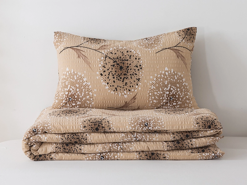 Hnědé povlečení v krepu a vzor pampelišek pro pohodlí v bavlně
