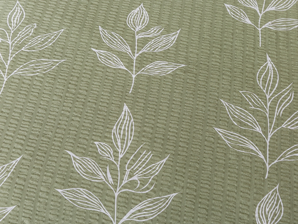 Zelené povlečení s bílým rostlinným vzorem dodá ložnici svěží a klidný vzhled. Stylové krepové povlečení kombinuje přírodní motivy s moderním designem a perfektně doplní interiér laděný do přírodních tónů. Oceníte jemnost bavlny s krepovou úpravou, vysokou savost, vzdušnost a odolnost materiálu. Bavlna v krepu si i po opakovaném praní zachová svou zvrásněnou strukturu, která šetří čas strávený žehlením.