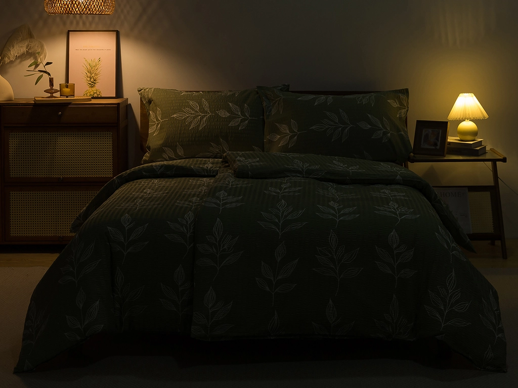 Krepové povlečení v zeleném designu pro klidný spánek