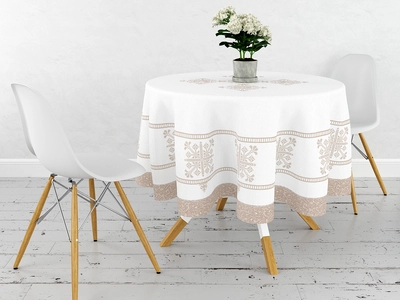 Ubrusy dokážou dodat styl i eleganci a taky navodit sváteční atmosféru v kuchyni či jídelně. Tyto ubrusy na kulatý stůl, nejenže přispějí k stylovému stolování, ale účinně ochrání povrch stolu proti poškrábání. Ubrus je vyroben z teflonového materiálu, který snadno vyperete, rychle vysušíte a je opět nachystaný zkrášlit vaši domácnost a zpříjemnit vám vzácné chvíle strávené s rodinou. Spodní strana ubrusu je bílá, kraje jsou ukončeny zdobným obloučkovým zastřižením bez obšití.