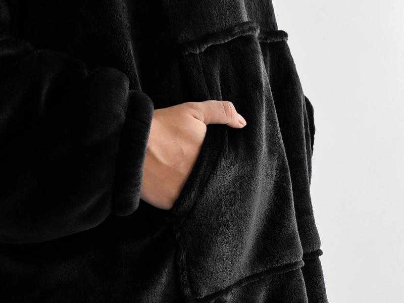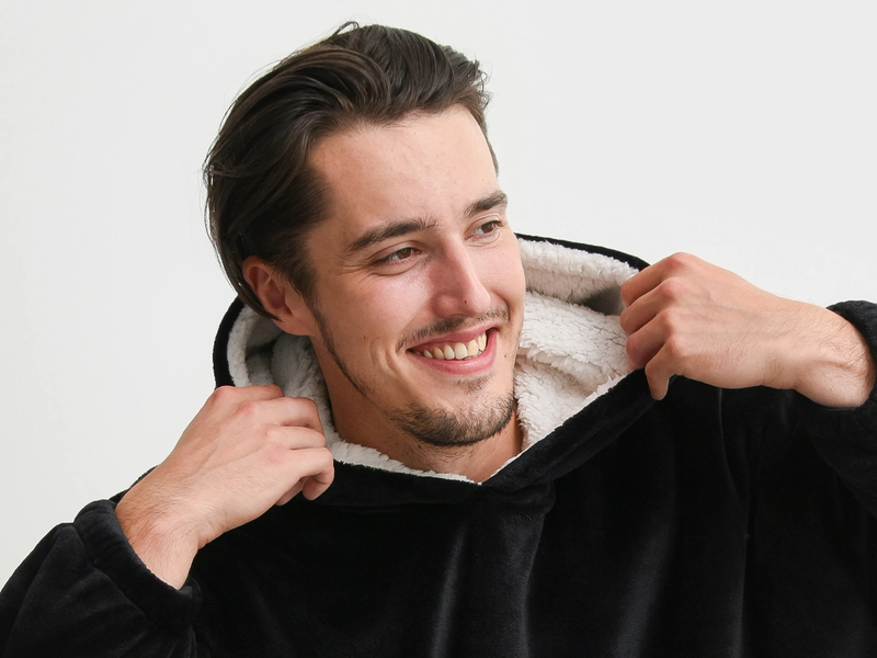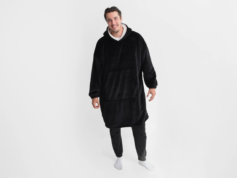 Mikinové deky jsou velmi měkké a pohodlné na dotek. Černý mikroplyš a bílý beránek uvnitř je dělá oblíbenými a to nejen při relaxaci po celý den. Deka s rukávy a kapucí vás příjemně zahřeje dvojí vrstvou mikroplyše s beránkem, a to klidně u televize, při čtení knížky, nebo stejně jako mikroplyšová deka, tak i teplá mikina dobře poslouží na terase za chladného počasí. Tato oversize mikinaUNI velikost (rozměry viz fotografie) a v neutrální černé barvé dopřeje pohodlí jak pro ženy, tak i pro muže. Jsou velmi lehké i skladné, a tak si je můžete přibalit společně se županem a mít pohodlí i na dovolené či na chatě. A údržba? Mikinové deky stačí vyprat, vysušit klidně i s použitím sušičky na jemný program s nižší teplotou a opět se můžete zachumlat do teploučka.