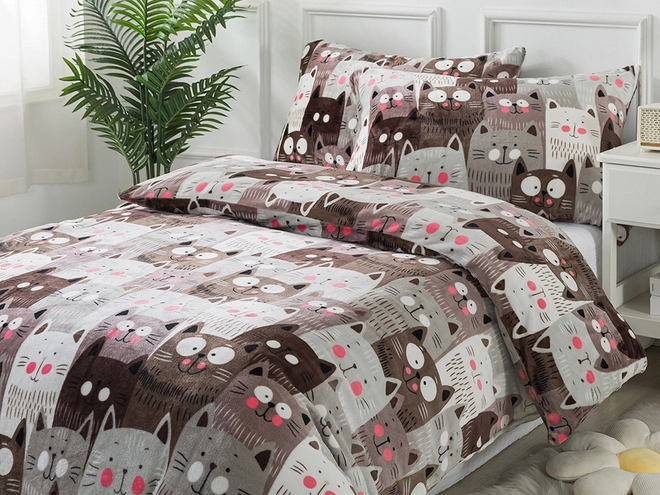 Hledáte teplé povlečení na zimu a kočičí parťáci patří mezi vaše oblíbené domácí mazlíčky? Pak jste tu na správném místě! Mikroplyšové povlečení a vzor koček vaše chvíle odpočinku doslova posunou na vyšší úroveň. Tmavý dezén krásně doladí i téma na Halloween. Mikroplyš je hřejivý a jemný materiál tvořený vláknem s krátkými chloupky, které má výjimečnou schopnost vytvářet v posteli útulno a teplo. Užijte si chvíle odpočinku v mikroplyšovém povlečení a dopřejte jej i své rodině či blízkým jako vánoční dárek, který zaručeně potěší.