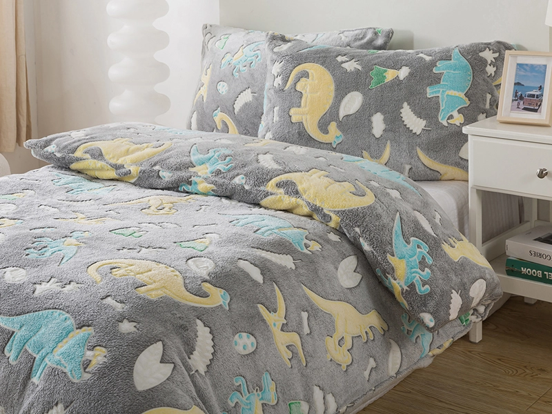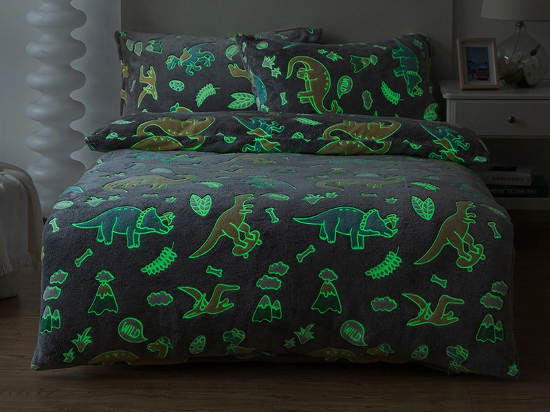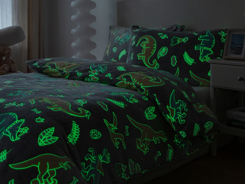 Plyšové povlečení a vzor dinosaurů pro malé dobrodruhy a spánek v hřejivém objetí