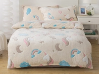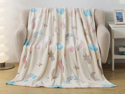 Mikroplyšové povlečení udělá dětem radost hned dvakrát. Vaše ratolesti příjemně zahřeje, pohladí jemností a rozveselí jemným vzorem duhy a jednorožců. Toto béžové povlečení 140x200 na klasické jednolůžko ozdobí pokojík a potěší hlavně malé slečny. Obrys vzorů po nasvícení, a následném zhasnutí ve tmě světélkuje, díky fosforové, pro děti nezávadné barvě. Mikroplyš je hřejivý materiál tvořený jemným mikrovláknem s krátkými chloupky, které mají výjimečnou schopnost vytvářet v posteli útulně a teplo. Mikroplyšové povlečení na zip skvěle pasuje na naši nabídku lůžkovin. Každá dětská postel či postýlka si zaslouží krásný dětský textil.