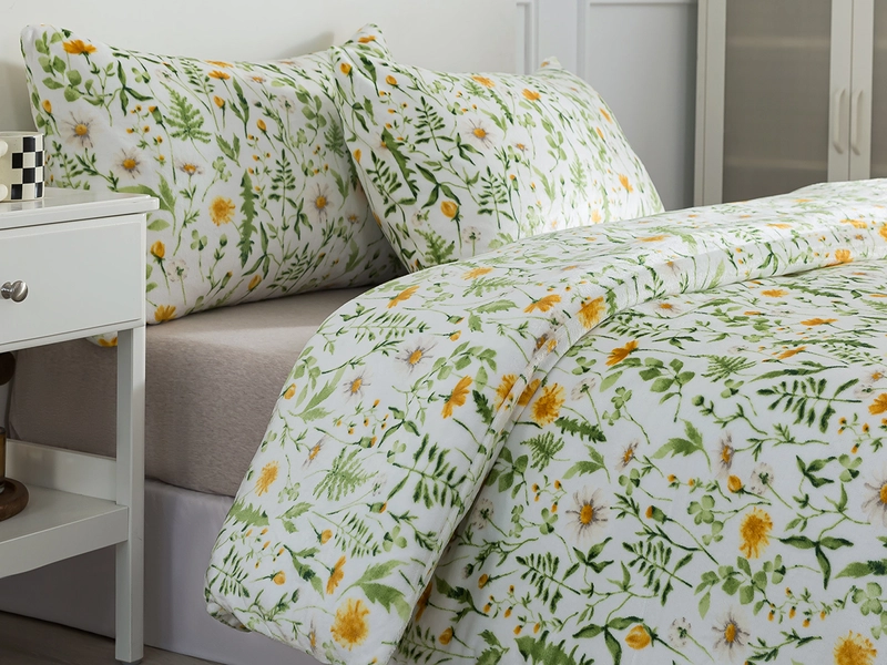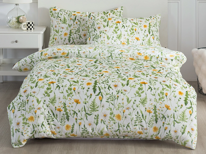 Proměňte si ložnici do snového ložního prádla s lučním kvítím. Mikroplyšové povlečení i příjemná kombinace barev žluté a zelené na bílé v podkladu, vyladí každý interiér a navodí v něm příjemnou atmosféru jako jarní povlečení, nebo jako teplé povlečení do chladných ložnic klidně i celoročně. Materiál s jemným chloupkem po vyprání rychle usychá, nežehlí se a celková péče o něj je velmi snadná. Jasné a stálé barvy neztratí na kráse ani po mnoha vypráních. A nebojte se, nevytváří žmolky a nepouští chlupy!