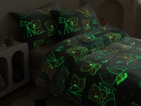 Dopřejte i vašim dětem klidný a sladký spánek plný jemnosti v teplé posteli. Ve dne je na mikroplyšovém povlečení rozveselí roztomilý medvídci, hvězdy, měsíc a spoustu dalších obrázků, a když se uloží do postele a zhasne se světlo, tak je ve tmě potěší svítící obrysy vorů. Toto povlečení má delší chloupek, co vytváří světlé melírování zeleného podkladu, a ještě vyšší jemnost a měkkost pro děti. Povlečení mikroplyš je stálobarevné, nežmolkuje a zůstává nadýchané i po mnoha vypráních. Rychle schne a s praktickým zapínáním na zip se stane nejoblíbenější ložní soupravou každého dítěte.