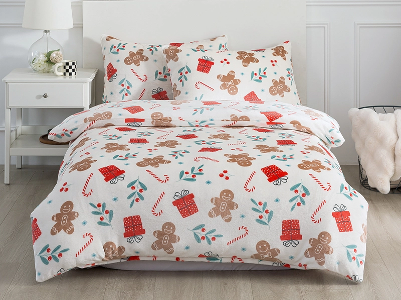Povlečení klasickou postel se vzorem perníčku pro vánoční pohodu v mikroplyši