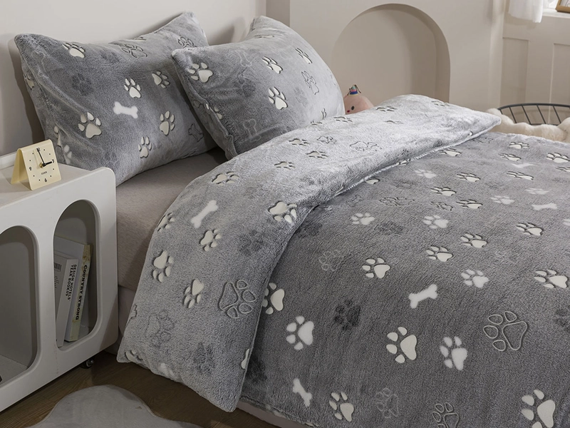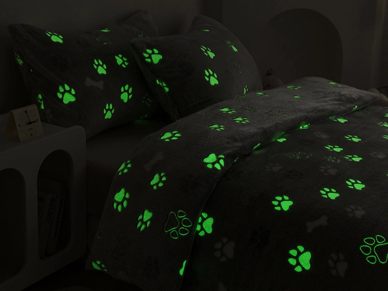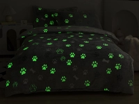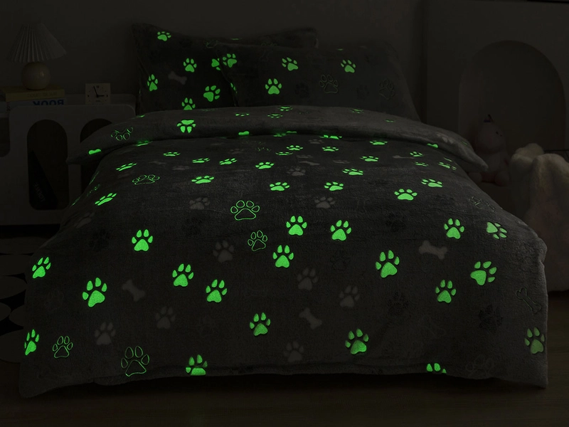 Svítící plyšové povlečení a vzor tlapek pro milovníky zvířecích mazlíčků a spánku