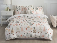 Francouzské povlečení a béžový základ s dezénem stromků je jemnou designovou tečkou do svátečního i skandinávského interiéru ložnice. Jemnost kreslených vzorů a kombinace oranžové a zelené barvy působí nerušivě a čistě. Oceníte nejen lehkost potisku, ale i mikroplyš, který je hřejivý a jemný s výjimečnou schopností vytvářet v posteli útulno. Odolný materiál i barvy vám budou dělat radost po dlouhou dobu a můžete je doladit například o mikroplyšové deky.