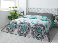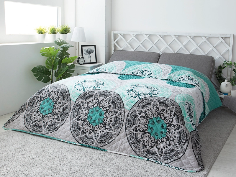 Nemáte čas ráno stlát? Přehozy na postel vám tuto činnost usnadní. Nejen ozdobí, ale i dokonale ochrání lůžkoviny ve dne a můžete jej také použít jako další přikrývku, která vás v noci zahřeje. Tento přehoz nadchne milovníky i milovnice tyrkysových, až zelených odstínů, jež ztvárňují ornamentální kruhové vzory. Jemný design vnese eleganci do každého interiéru. Povrch přehozu je vyroben ze 100% bavlny a vyplněn dutým vláknem s praktickým pravidelným prošíváním, které zajistí stabilitu i po vyprání. Přehoz na postel i doplňky z mikroplyše rozhodně posunou vaši ložnici na vyšší úroveň.