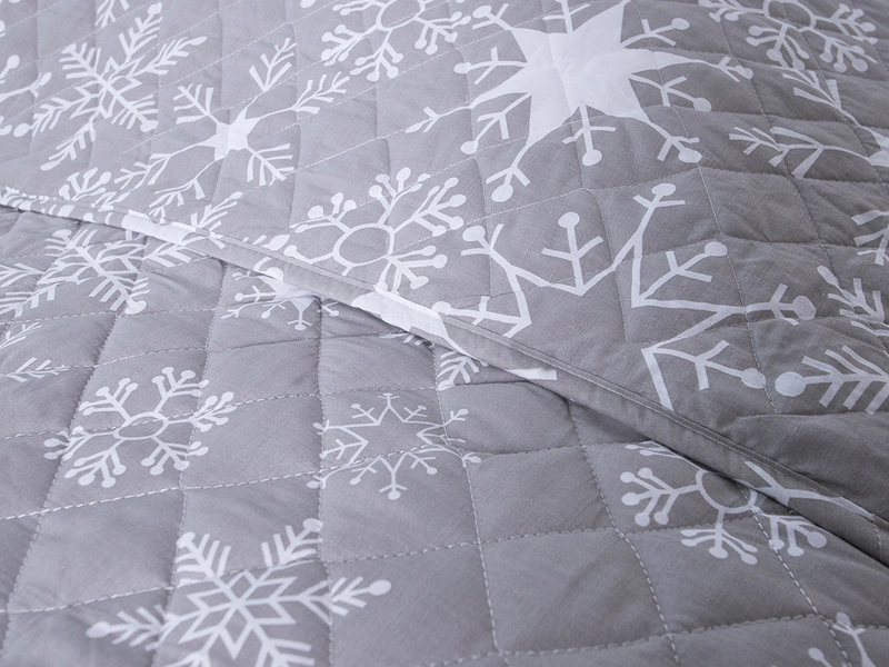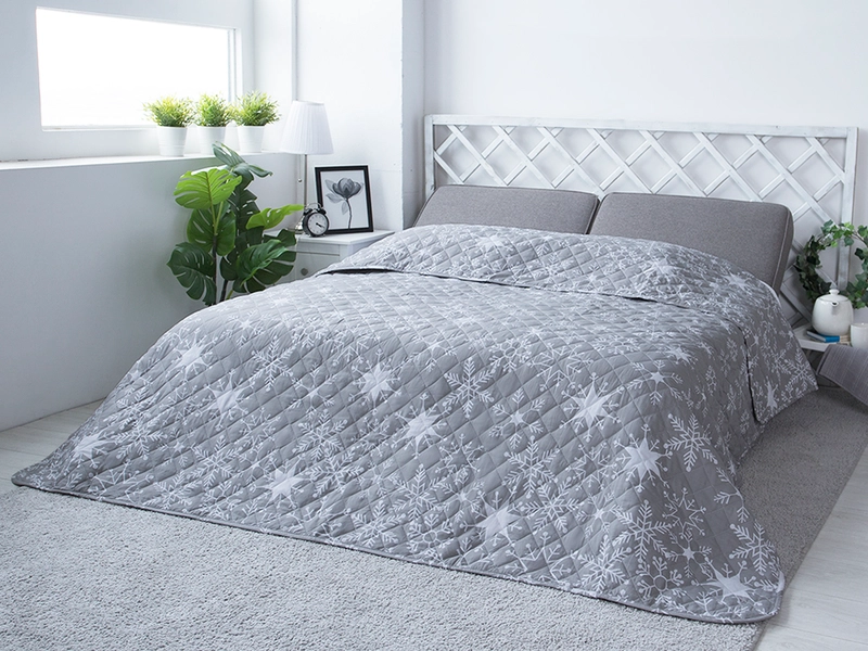 Jak na snadno a rychle ustláno postel? Přehozy na postel jsou tou správnou volbou. Přehozy 220x240 ve dne chrání lůžkoviny před prachem, ale klidně poslouží i jako lehká přikrývka při odpočinku. Romantická kombinace šedé a vzor sněhových vloček v bílé je jako stvořený pro milovníky decentních designů. Interiér ložnice působí díky přehozu čistě a úhledně. Povrch je vyroben ze 100% bavlny s výplní dutého vlákna. Praktické prošívání materiálů zajistí stabilitu i po vyprání.