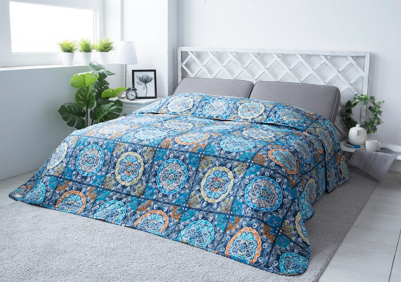 Dokonale ochrání lůžkoviny ve dne a můžete jej také použít jako další přikrývku, která vás v noci zahřeje. Nadchne milovníky i milovnice modrých odstínů, jež ztvárňují vzory mandál. Design orientu navodí útulnou a příjemnou energii v každém interiéru ložnice. Povrch přehozu je vyroben ze 100% bavlny a vyplněn dutým vláknem s praktickým pravidelným prošíváním, které zajistí stabilitu i po vyprání. Přehoz na postel rozhodně posune vaši ložnici na vyšší úroveň.