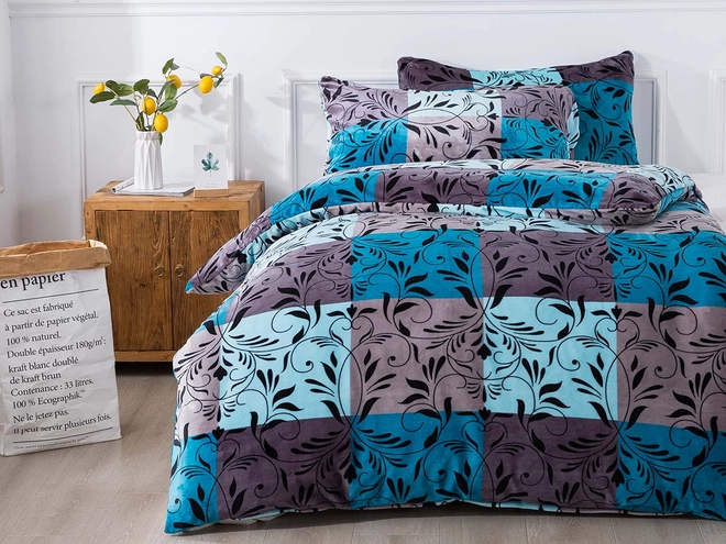 Francouzské mikroplyšové povlečení vám dá pocit jako v náruči plyšového medvídka. Efektní vzor šedých a tyrkysových čtverců zdobených florálním vzorem GALANA bude zaručeně dominantou hlavně světlých interiérů. Povlečení mikroplyš s dobrou termoregulací má výjimečnou schopnost vytvářet v posteli útulno a teplo již na první dotek. Toto francouzské povlečení 200x220 cm tvoří jemné česané vlákno s krátkými chloupky, jež nabízí řadu výhod. Oceníte vzdušnost, savost a hebký povrch no potěší také snadná údržba bez nutnosti žehlení.