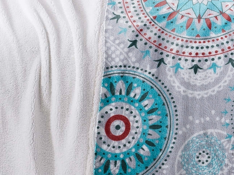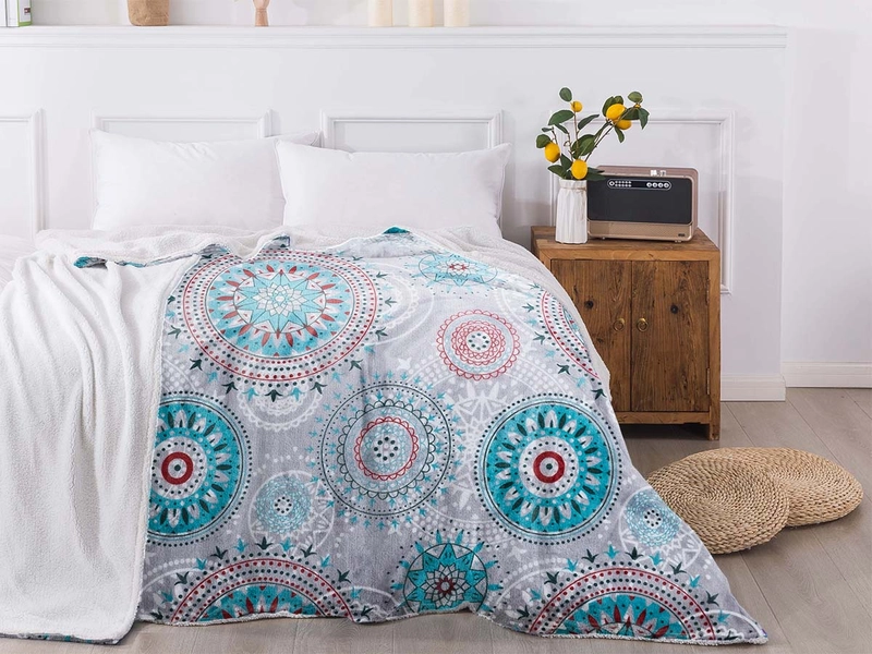 Hedvábně jemná a hřejivá mikroplyšová deka s beránkem vám nabídne náruč, jako od plyšového medvídka. Efektní motiv KIM, kde šedý základ nechá krásně vyniknout vzorům mandal v tyrkysu, bílé, červené vnese svěžest a harmonii do každé místnosti. No nebude jen dekoraci, ale užijete si ji při odpočinku s šálkem horkého čaje, lenošení u televizní obrazovky, zejména v zimním období. Je vhodným dárkem pro RODINU, přátele či věčné zimomřivce. Deku lze také povléknout a využít jako přikrývku na spaní.